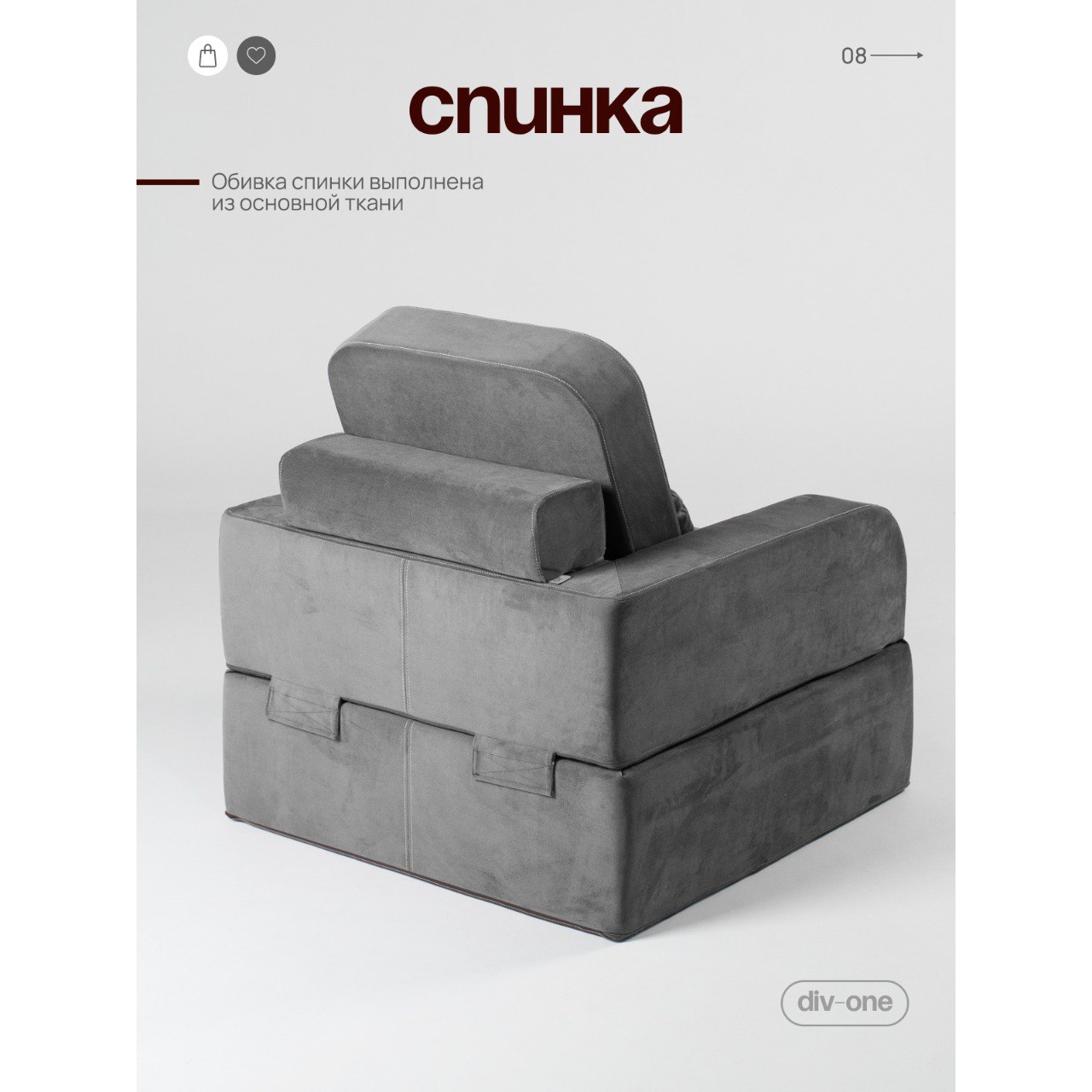 Это кресло-подушка идеально подходит для длительного сидения или сна, предлагая поддержку позвоночнику, а форма спинки дает возможность удобно устроиться.
