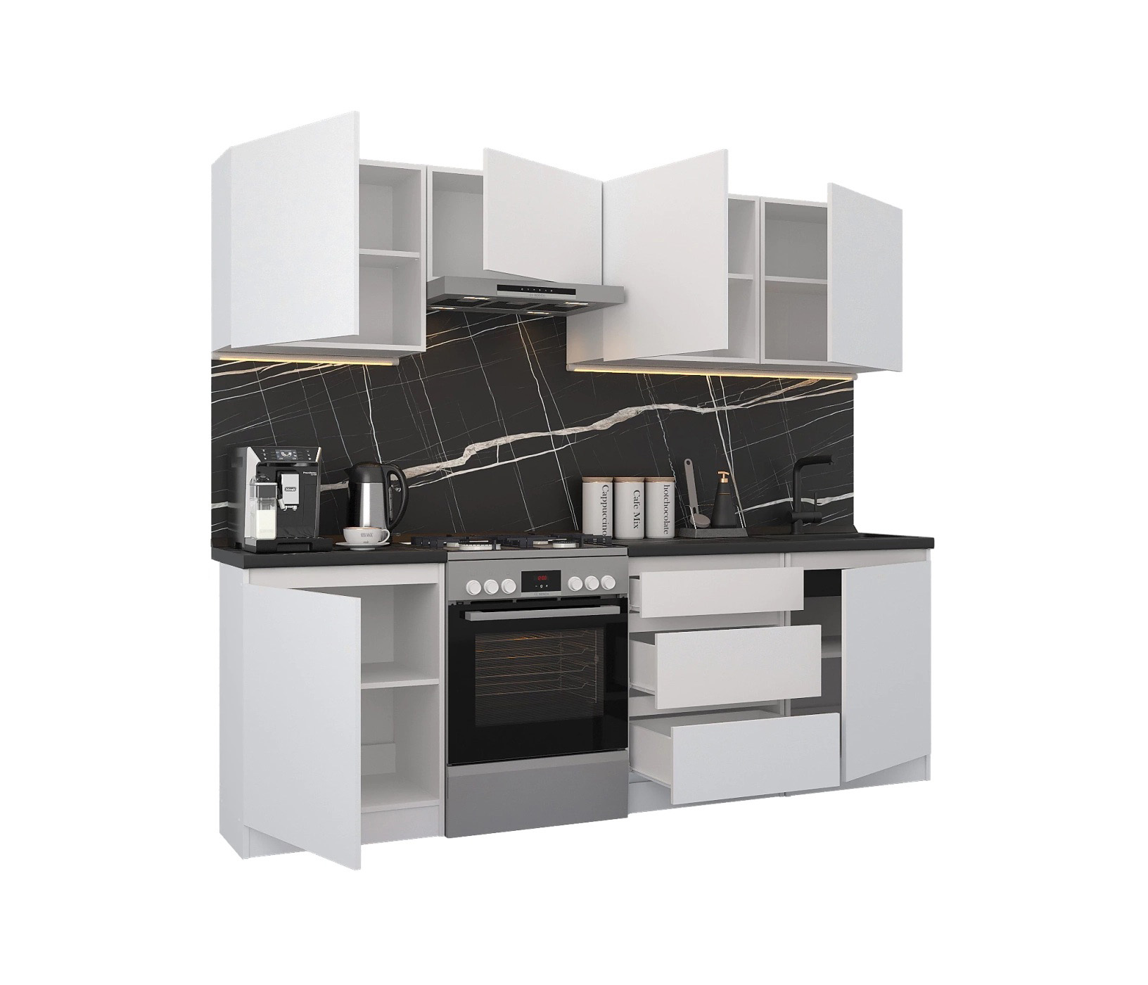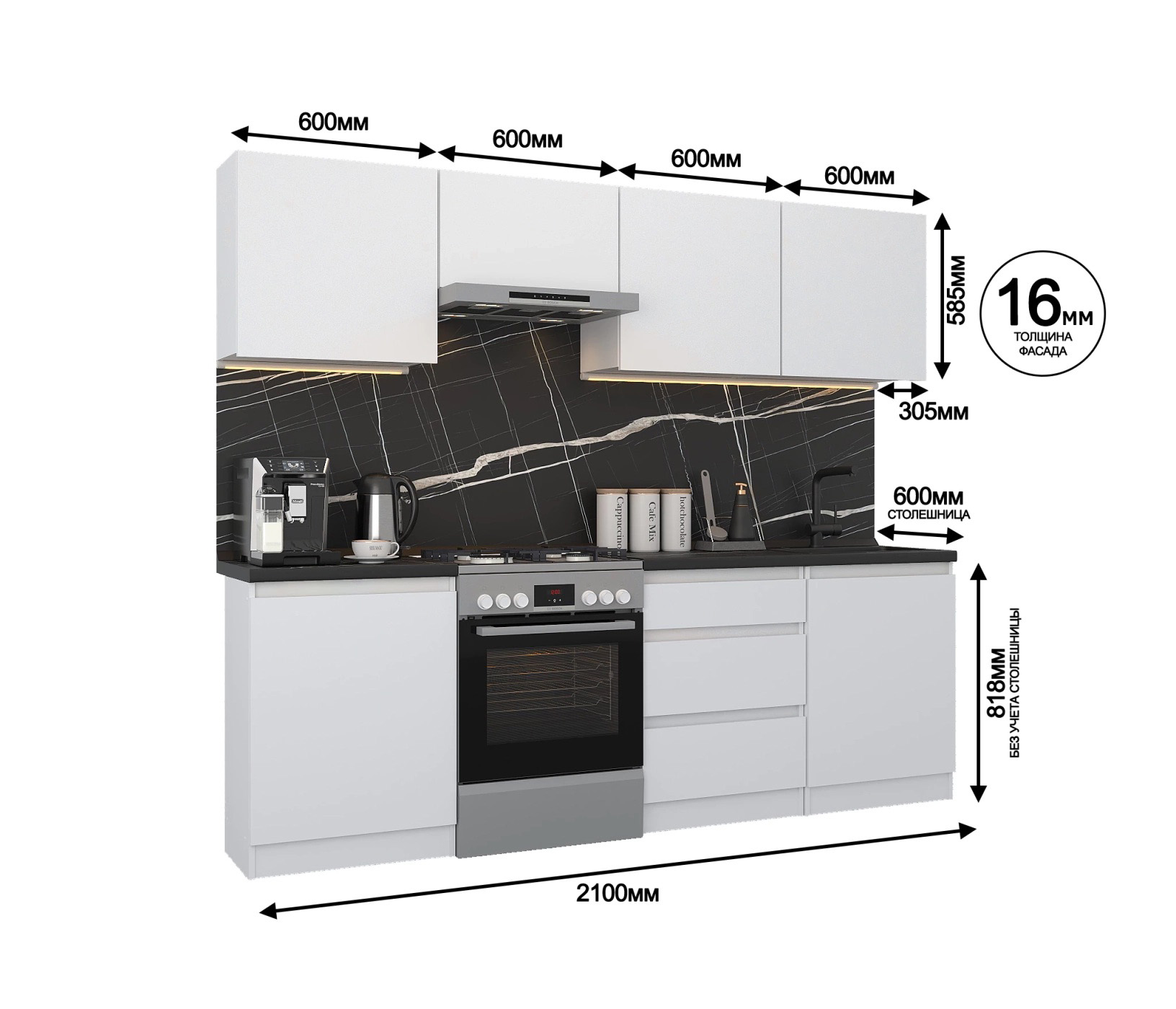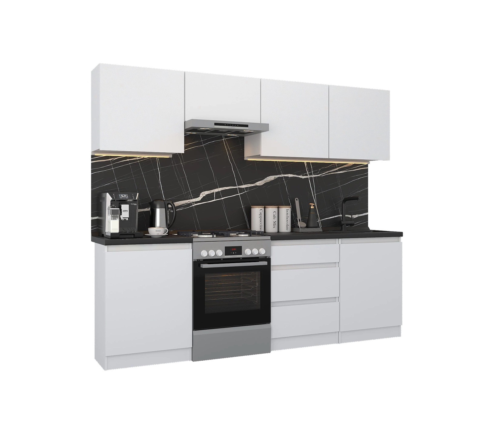 Кухонный гарнитур Леон прямой 240 см, белый (Белый)