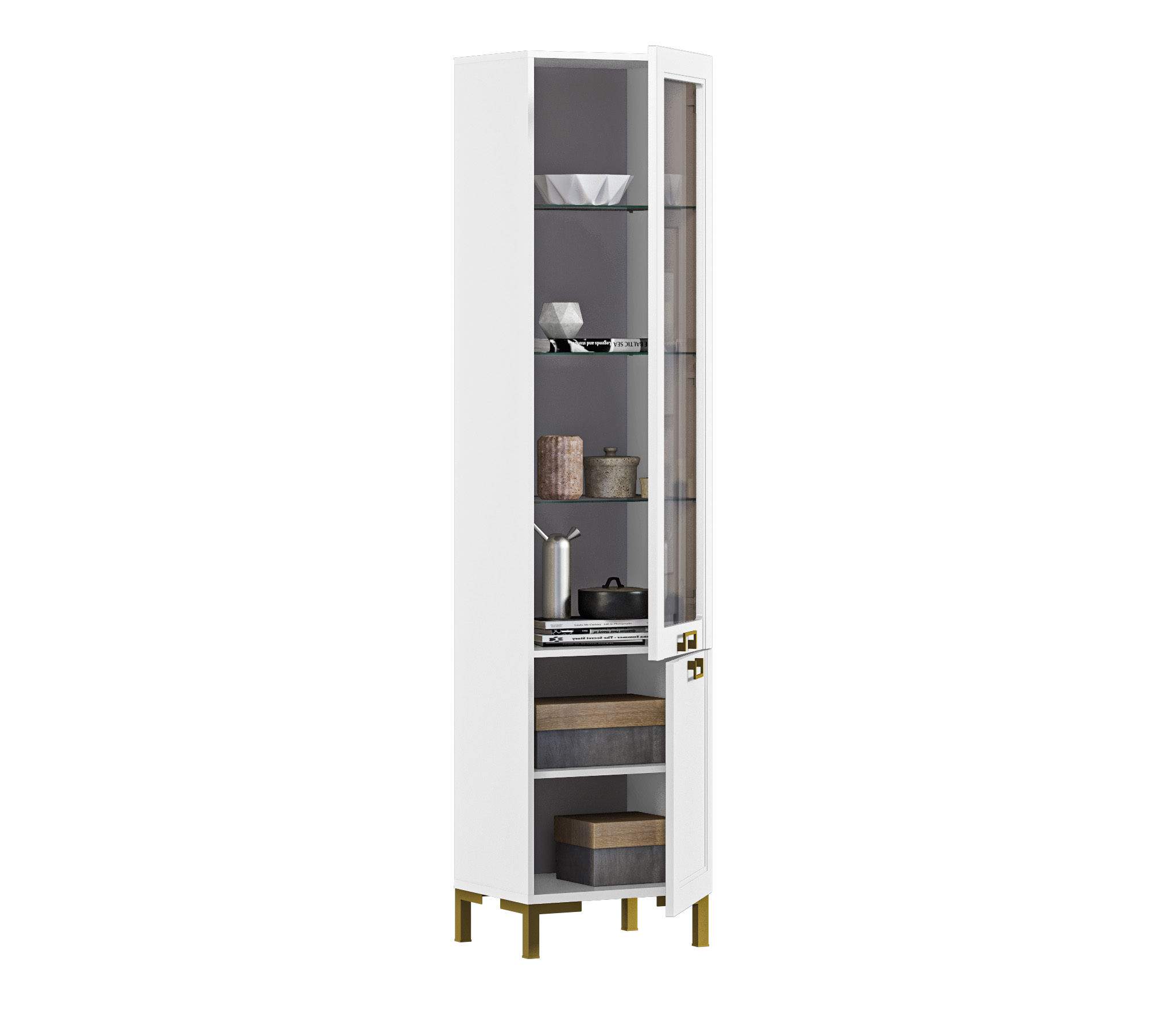 Шкаф-витрина Ассоль СБ-3429 Белый/МДФ Белый (Белый)