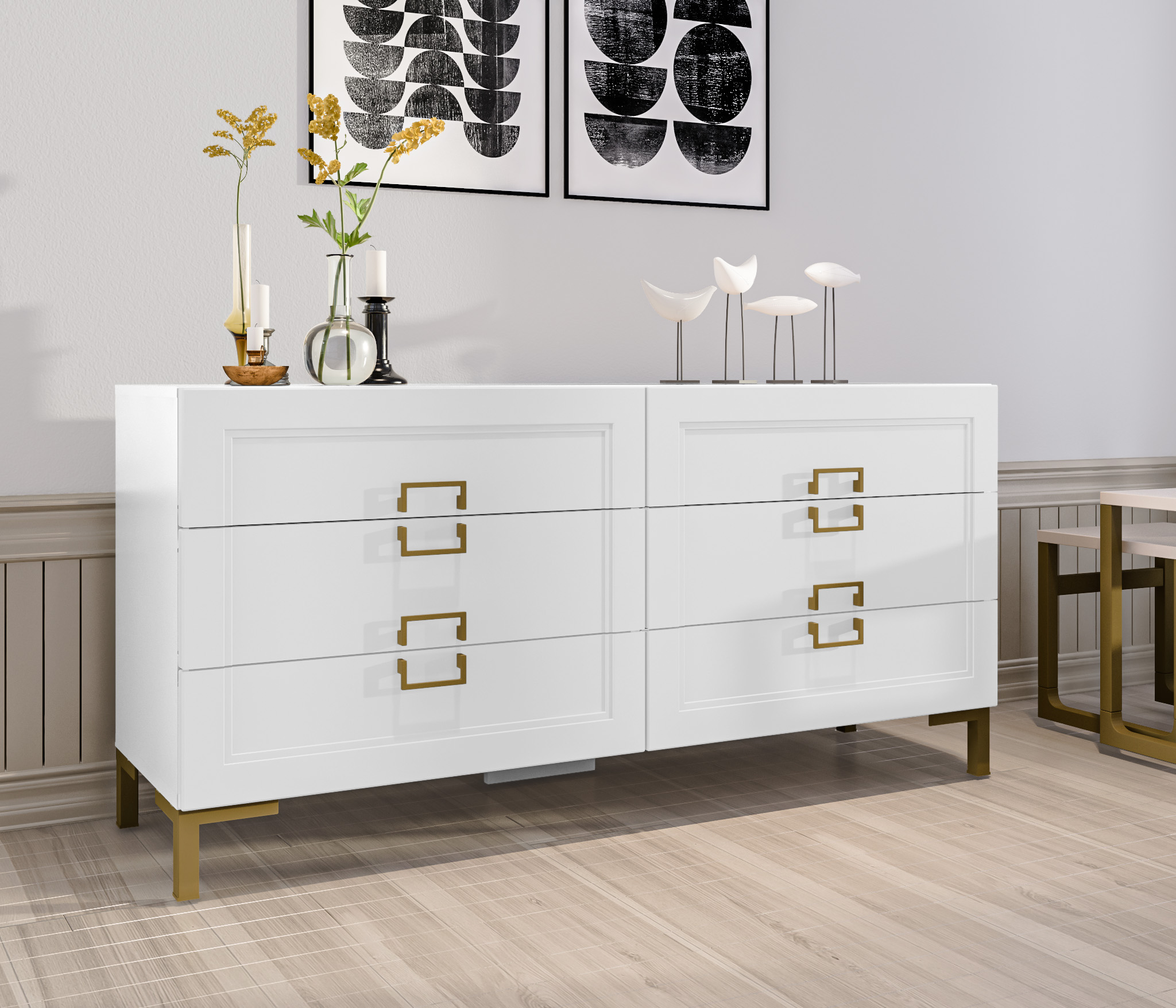 Золотистые ручки и ножки коллекции "Ассоль" добавляют неповторимый шик и изысканность, завершая образ тонким и стильным блеском. Эти акценты создают атмосферу роскоши и утонченности. Они играют роль визуального украшения, дополняя общий вид мебели и придавая ей особый шарм и элегантность.
