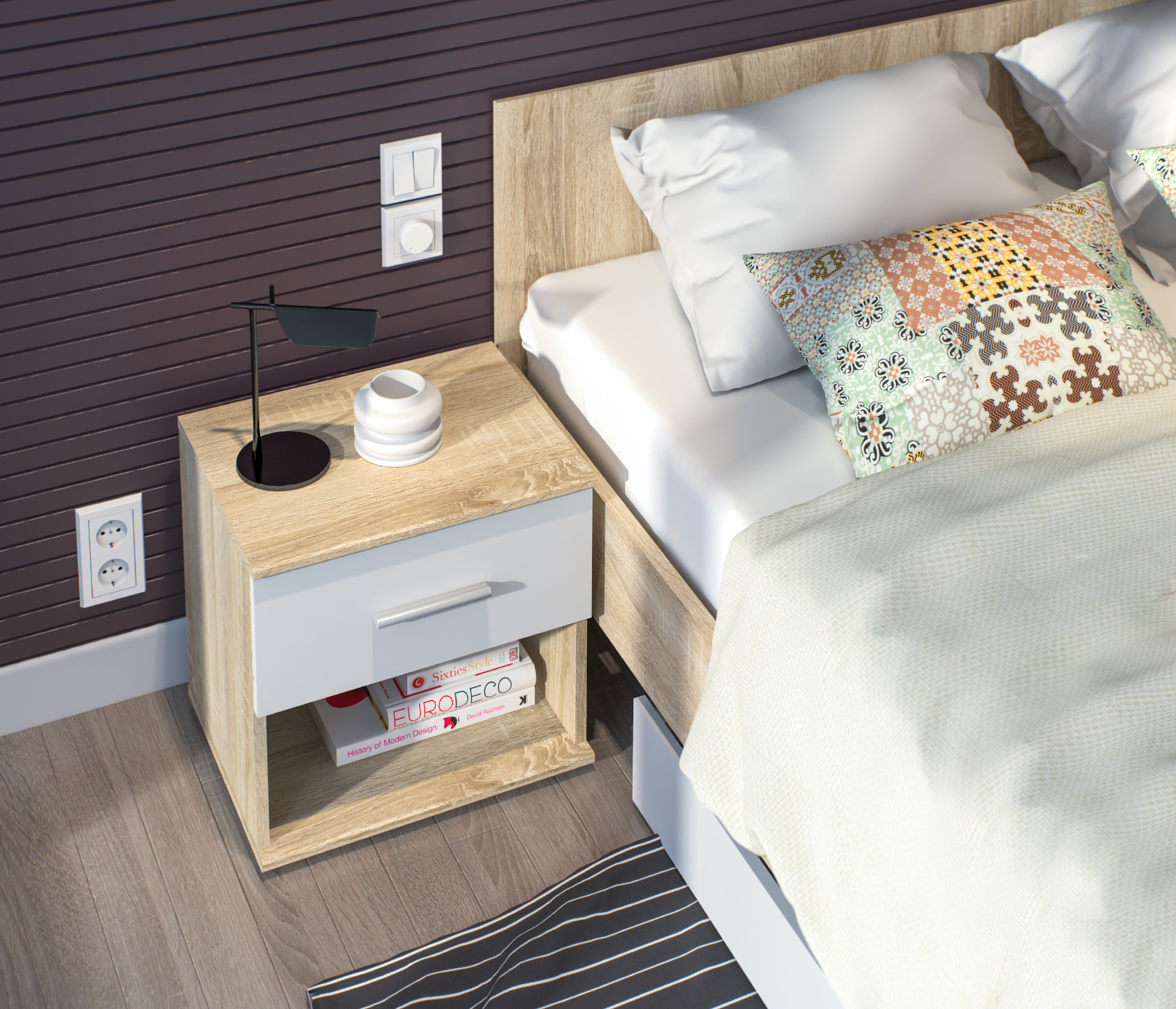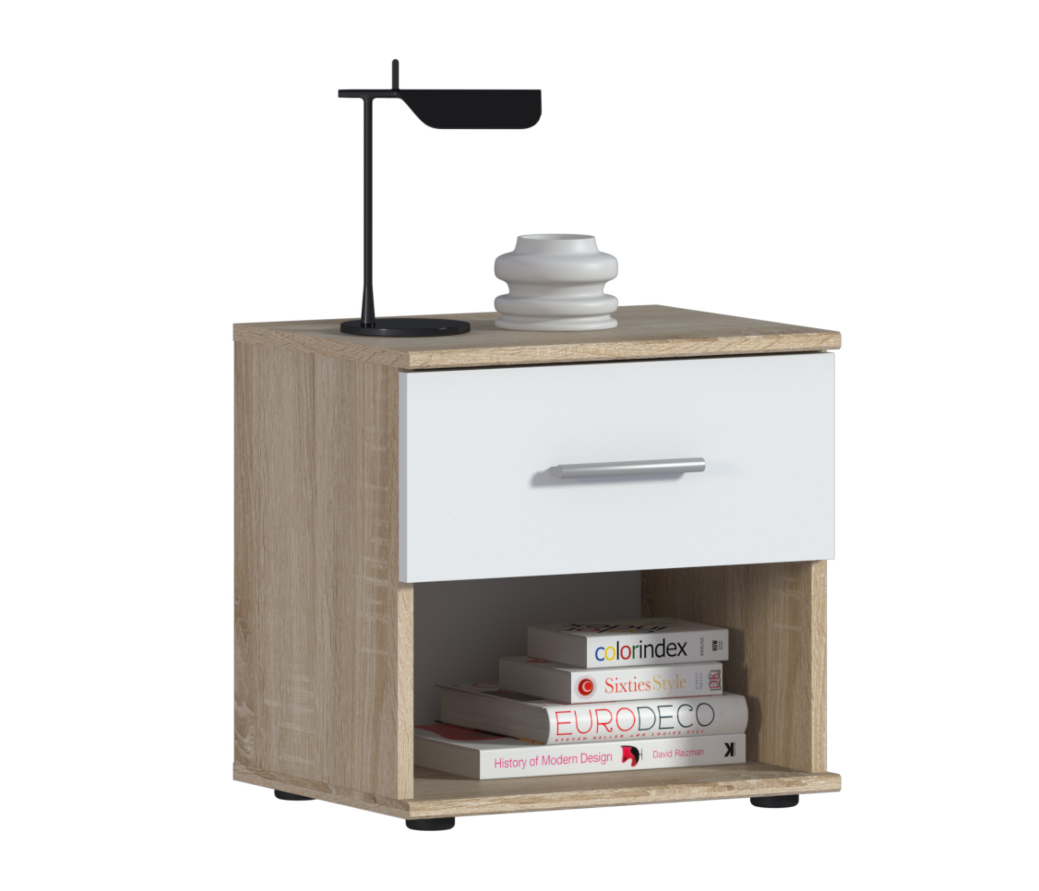 Тумба прикроватная Мамбо СБ-2683 (Дуб Сонома/Белый)