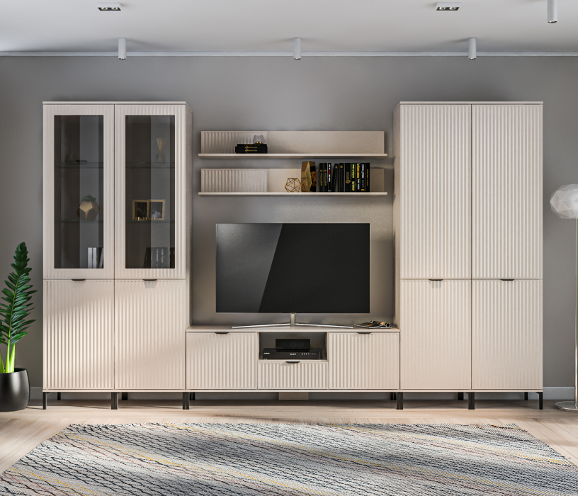 Набор для гостиной с двумя витринами Турин Кашемир серый/МДФ Кашемир (Кашемир серый)
