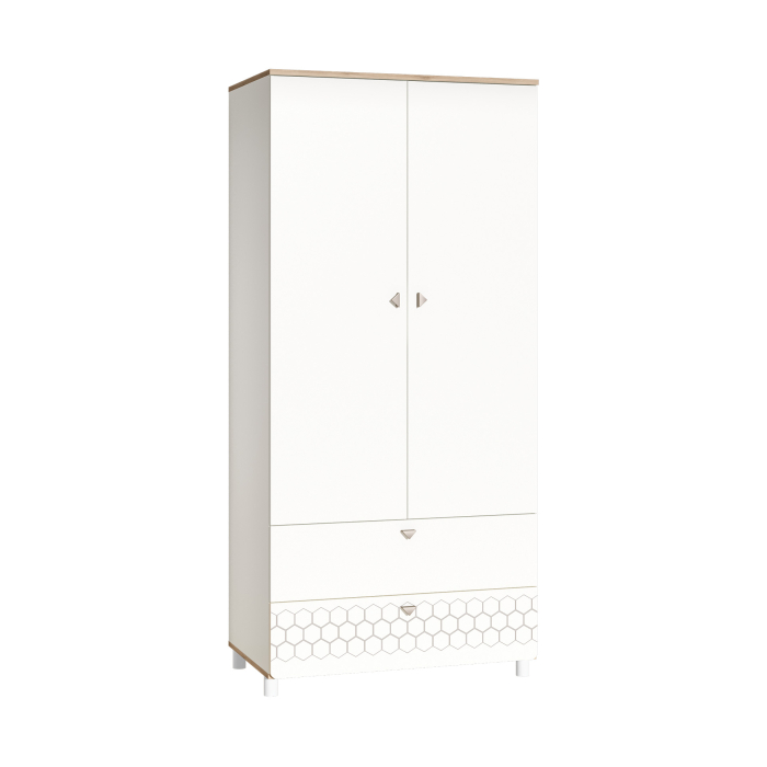 Детский шкаф Эйп станет функциональным элементом комнаты с интерьером в скандинавском стиле. Внутреннее наполнение включает всё необходимое для упорядоченного хранения гардероба: отделение со штангой для вешалок, ряд полок для сложенной одежды и два вместительных ящика, которые выдвигаются на всю глубину. Благодаря регулируемым опорам модель можно установить даже на неровном полу.
