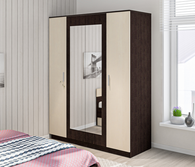 Шкаф 4х дверный с зеркалами Уют СБ-2750/1.Н (Венге/Дуб Паллада)