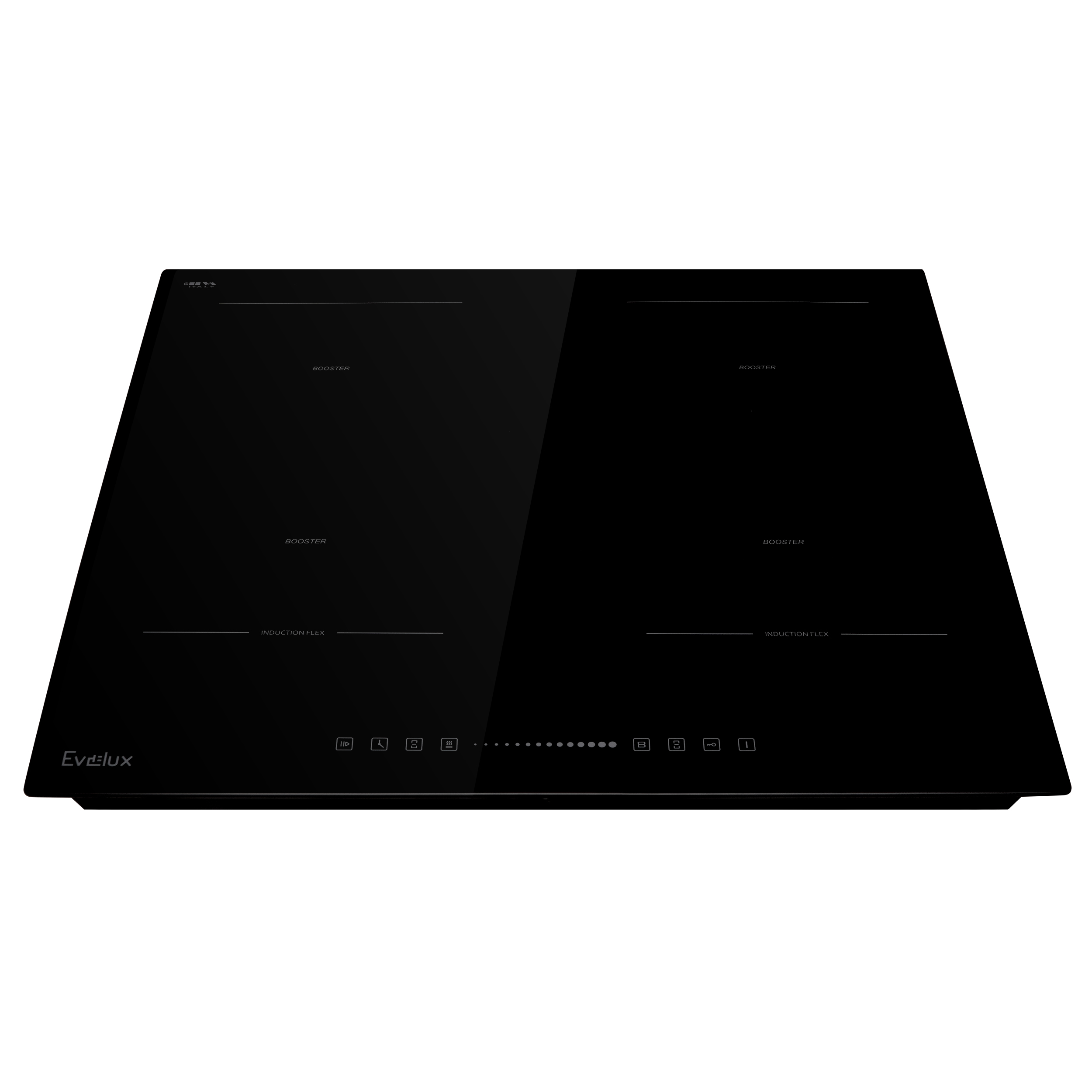 Электрические варочные панели. Варочная панель электрическая, индукция, 60 см, 4 конфорки с функцией Booster, сенсорное слайдерное управление,9 уровней мощности,таймер 1-99 мин,Flex-зоны ,блокировка управления,защита детей,защитное отключение, функция "пауза",функция поддержания тепла,7360 Вт, черное стекло, ILVA (Италия),590 x 520 x 62 мм.