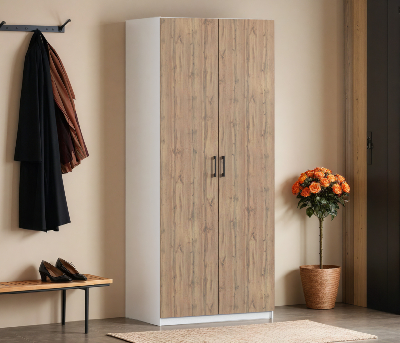 Шкаф двухдверный Макс 1000 мм, вариант №2 (ЛДСП) (Дуб вотан/Белый) Код 00000337265