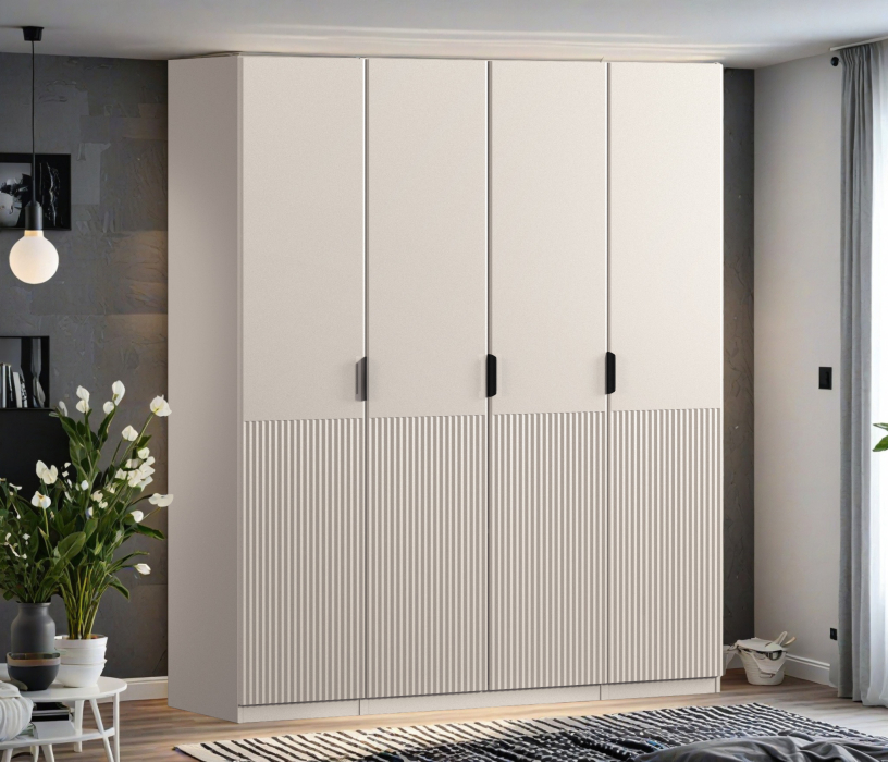 Шкаф четырехдверный Макс 2000 мм, вариант №1 (ЛДСП/МДФ) (Кашемир)
