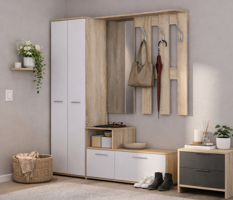 Проблема как и у всех, заявлено зеркало с левой стороны, на фото и инструкции зеркало с левой стороны, по факту крепежные отверстия только для зеркала справа. Итог видно на фото. Ещё одним недостатком является комплектное крепление на стену, целый день крутил и так и сяк, вешалка на нем висит на стене очень хлипко. В итоге повесил на петли от старой вешалки.