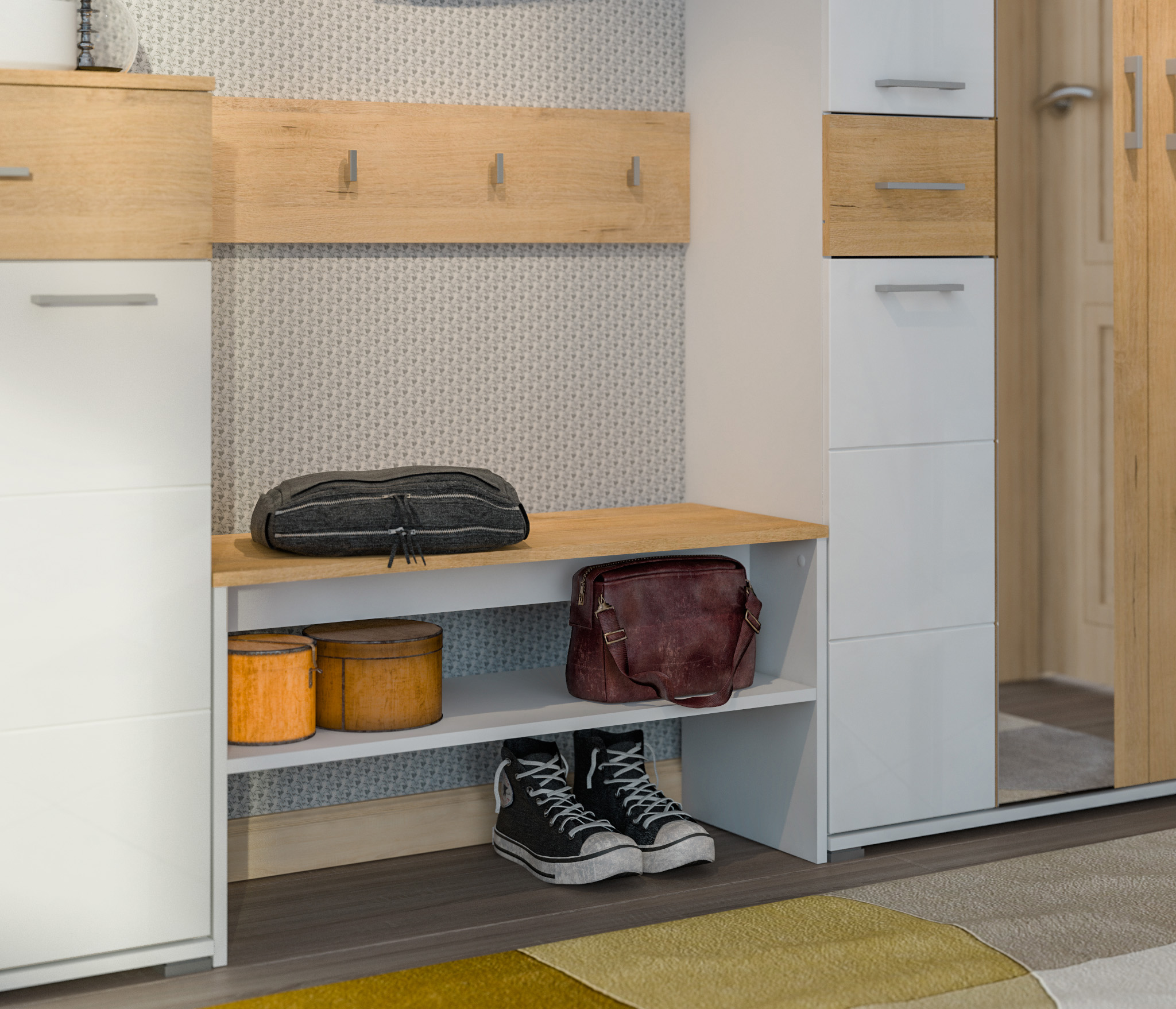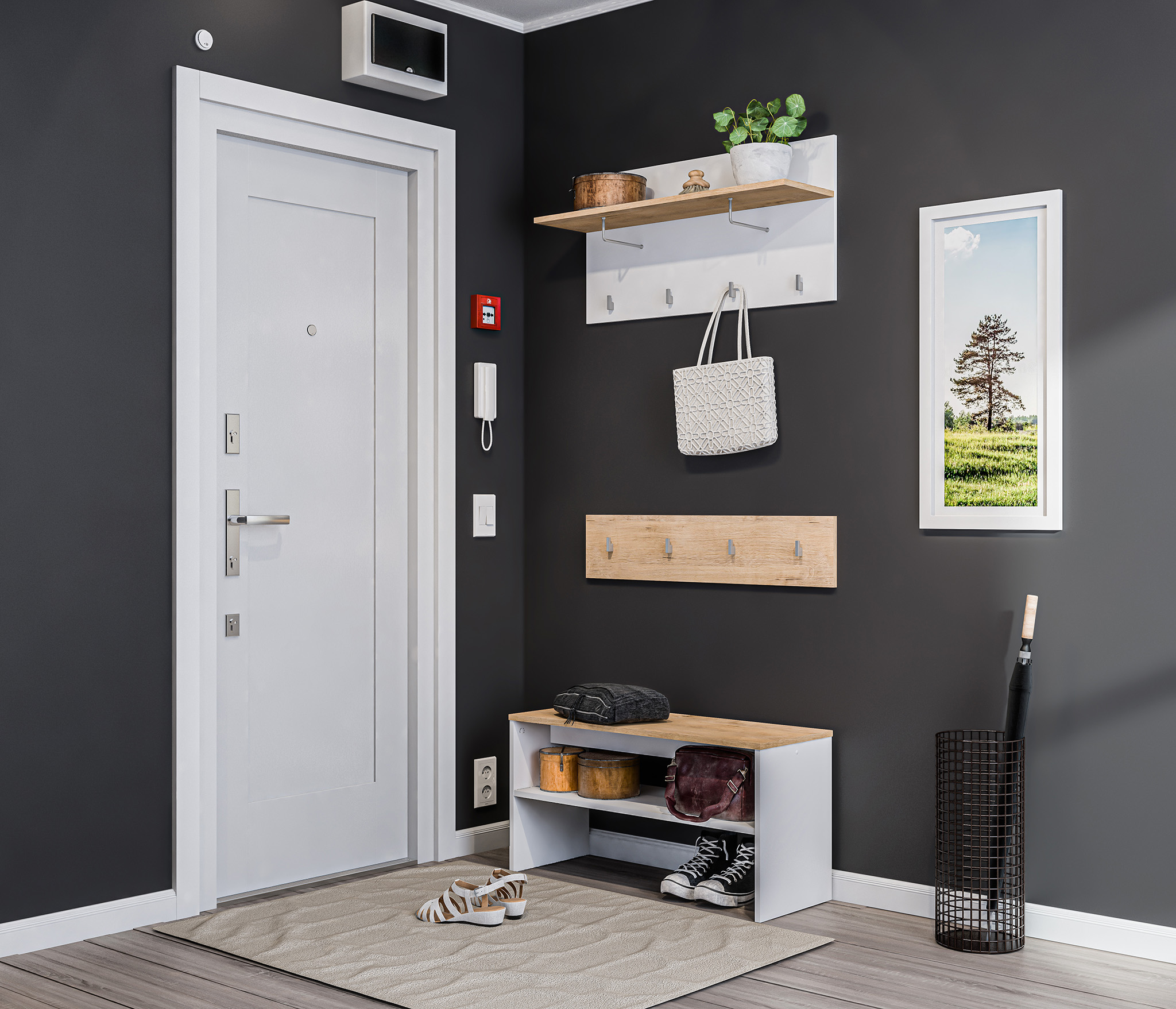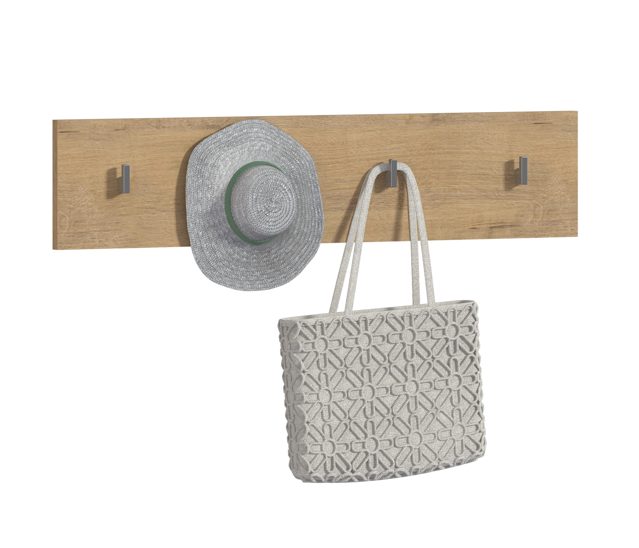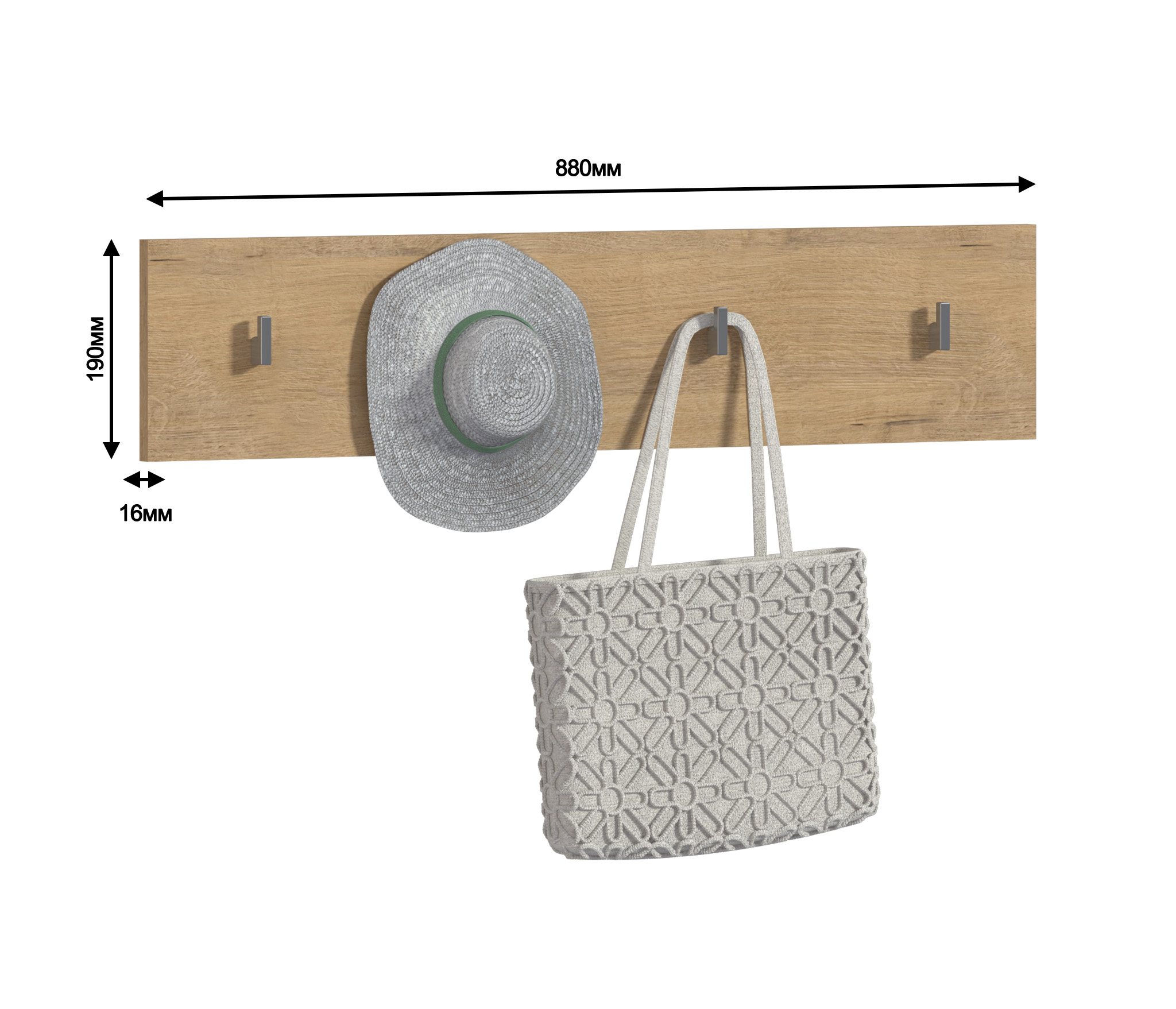 Покупала вешалку в комплекте с прихожей Мелисса. Крючки мелковаты, зато смотрятся очень лаконично. Не уверена, что крючки выдержат сумку, но зонтик- вполне.