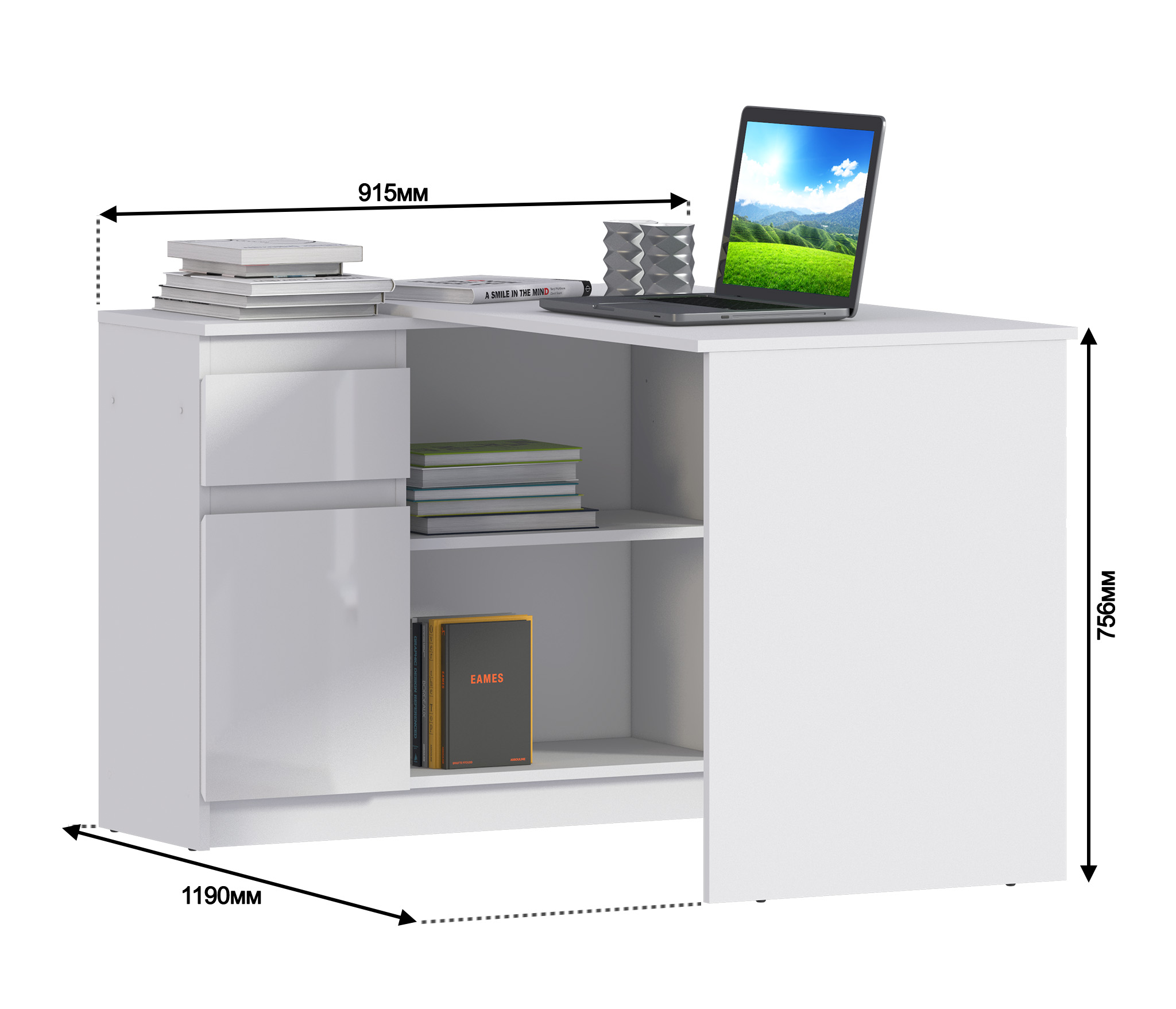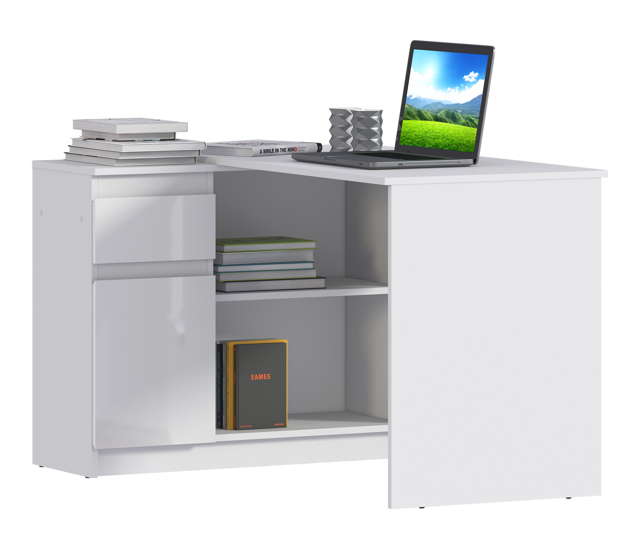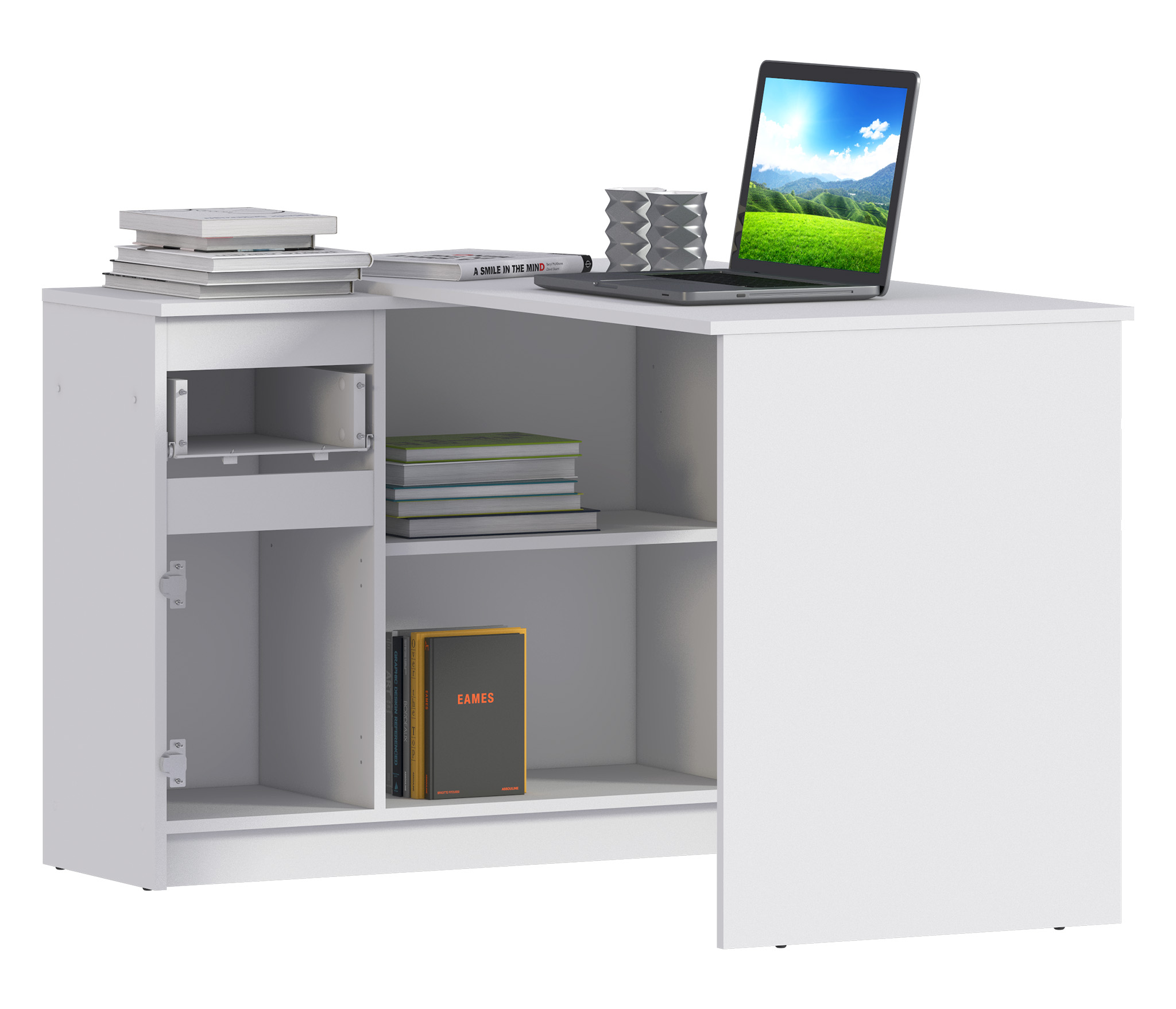 Стол письменный с ящиками Медея СБ-3239 имеет строгий и лаконичный дизайн, прекрасно расположится в вашем интерьере. Письменный стол сэкономит место в комнате, благодаря угловой конструкции, а фасады стола белого цвета, выполненные из ЛДСП, остаются актуальными и по сей день. Кроме того, их легко держать в чистоте, периодически протирая влажной тканью. Стол идеально подойдет для детской комнаты, дополнит рабочее место для школьника. Может использоваться как рабочий офисный стол, или стать тематическим центром личного кабинета в качестве компьютерного стола. Если дополнить мебель аксессуарами, получится комфортный стол для косметики или туалетный столик. Стол Медея СБ-3239 с полками и ящиками, эти дополнительные пространства всегда будут полезны: расположите книги, учебники, личные вещи и другие, нужные под рукой, вещи и работать за столом станет комфортнее и удобнее.