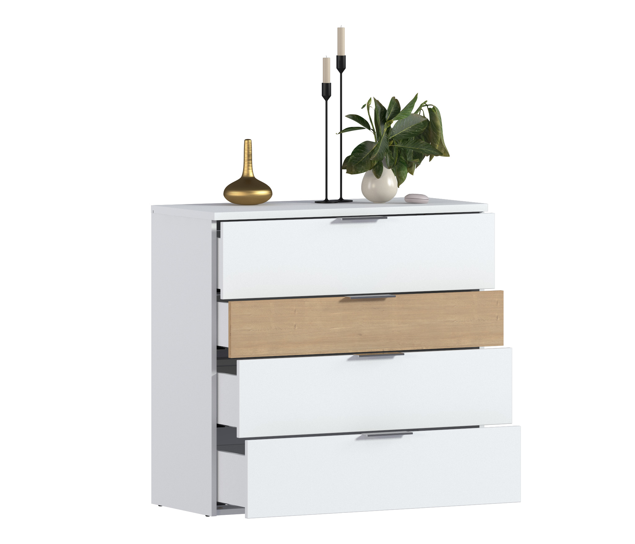Комод имеет четыре вместительных ящика.