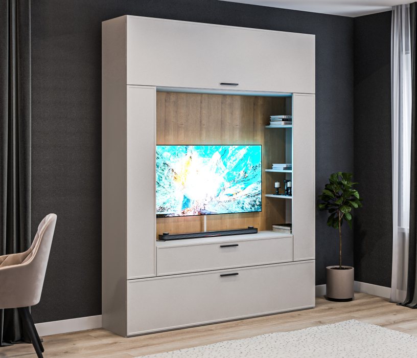 Есть бугры на фасаде в некоторых местах, не критично , но при детальном рассмотрении видны. Стенка по ТВ зону , при этом абсолютно не предусмотрен вывод проводов . Пришлось делать розетки для подключения техники .(что влечёт дополнительные и не малые расходы)