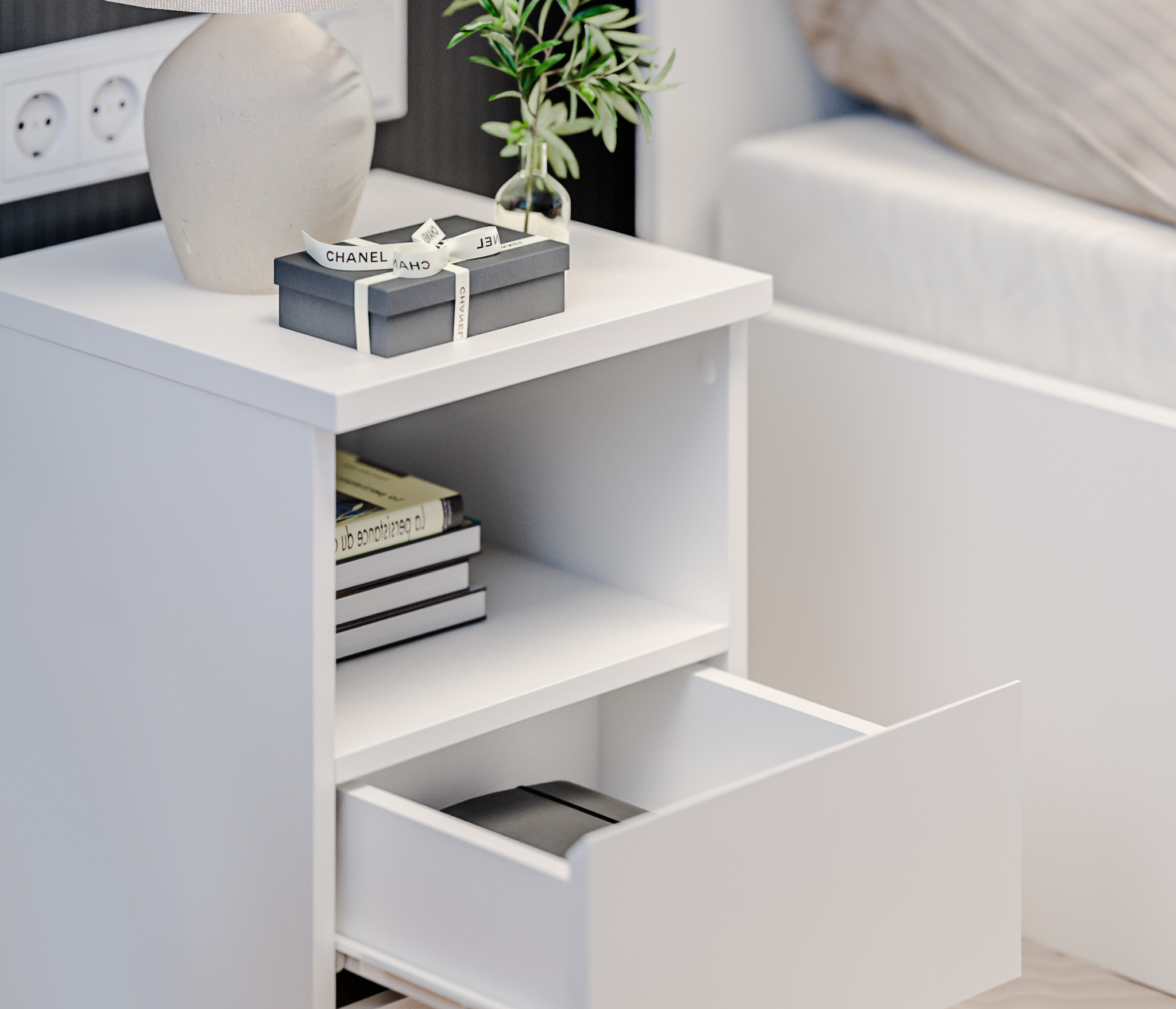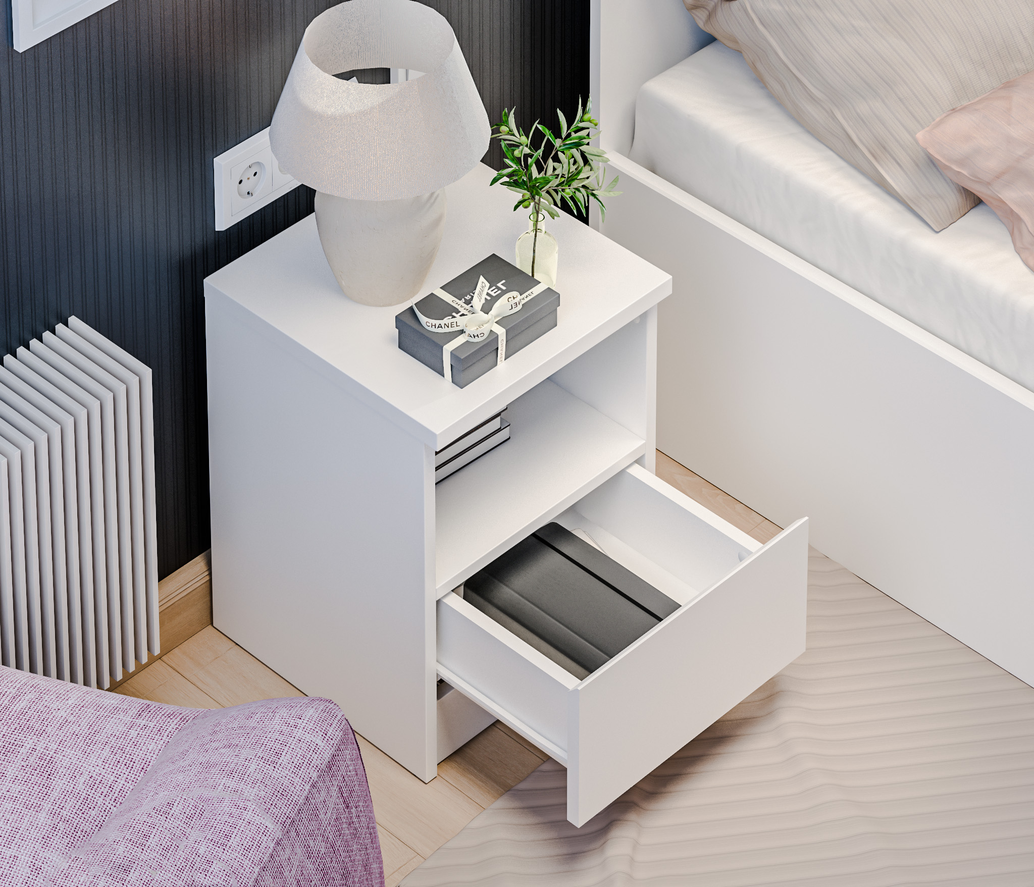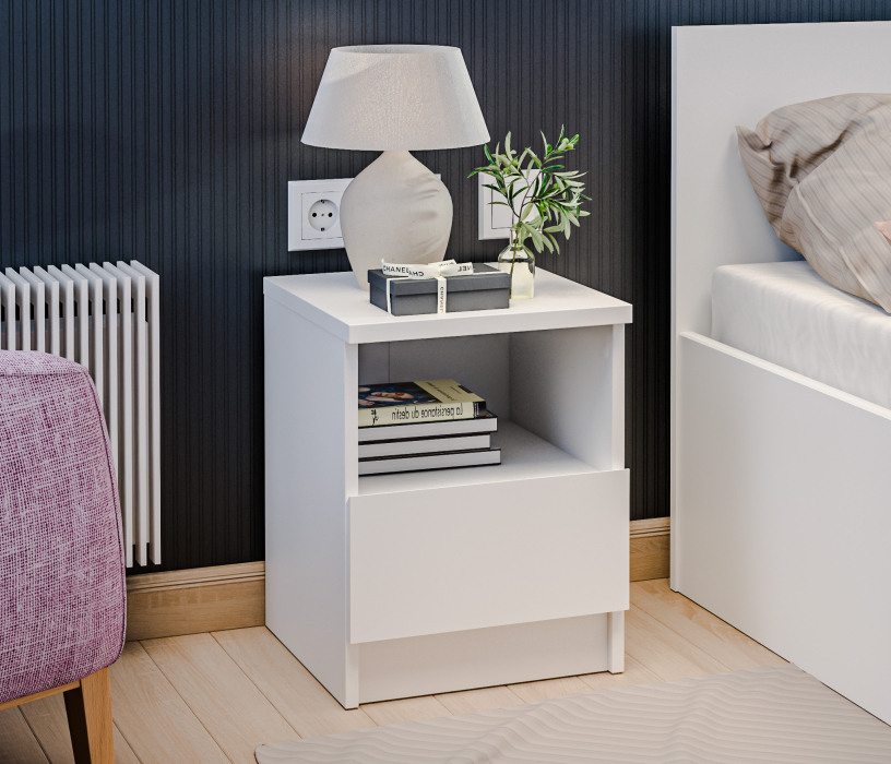 Прикроватная тумба Альфа СБ-2957, выполненная в минималистичном стиле, может быть частью гарнитура, а может быть отдельным предметом мебели. Тумба будет органично смотреться в спальне и детской.