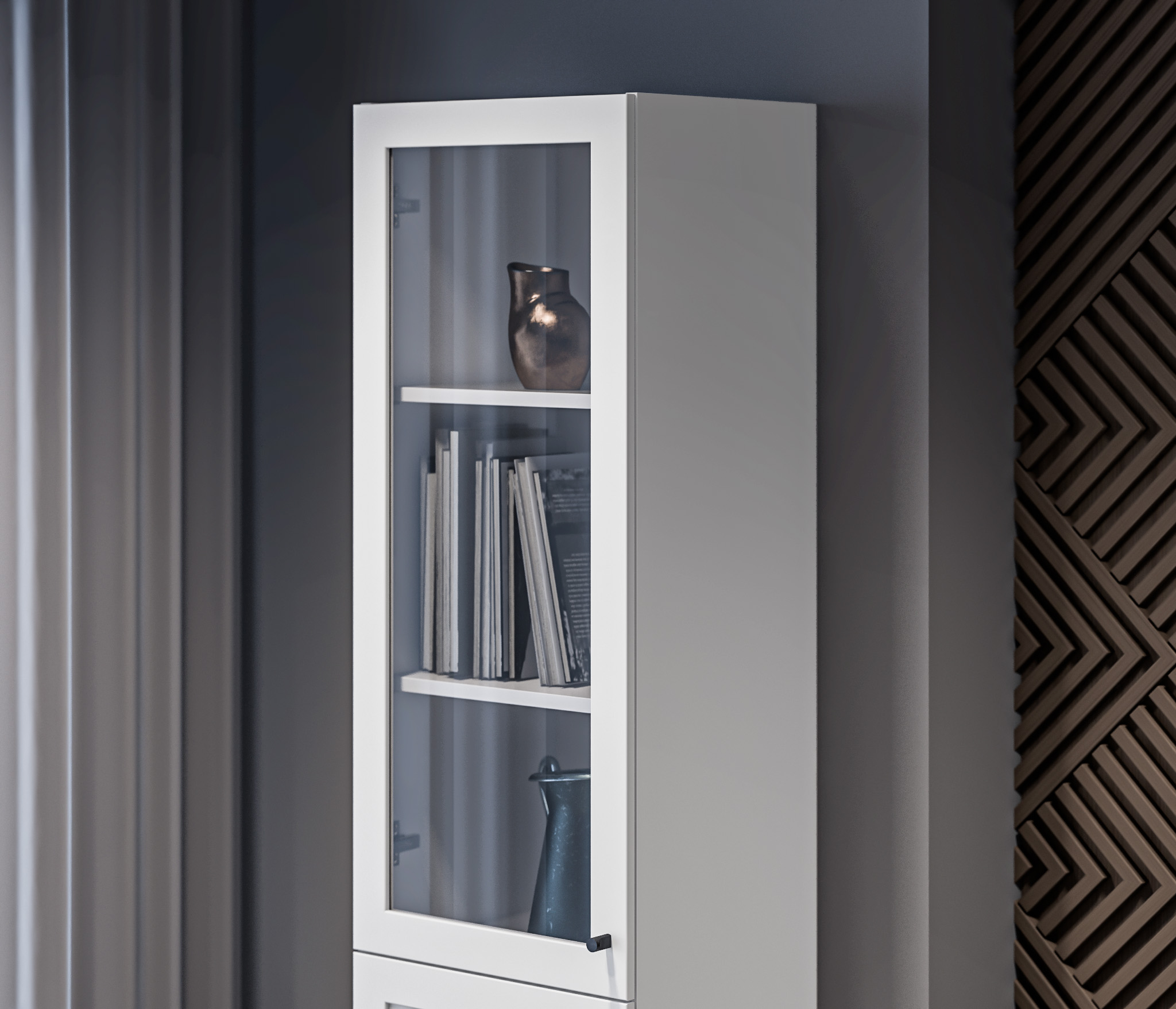 МС Твин предоставляет возможность собрать шкаф или стеллаж по своему вкусу. Вы сами выбираете размеры, цвет ручек: белый или черный, наполнение: ящик или полки. Помимо этого, вы можете решить, оставить фасады глухими или выбрать стеклянные, чтобы добавить прозрачности и легкости в ваш интерьер. Создайте шкаф-стеллаж, который идеально подходит для ваших потребностей и вписывается в ваш стиль.