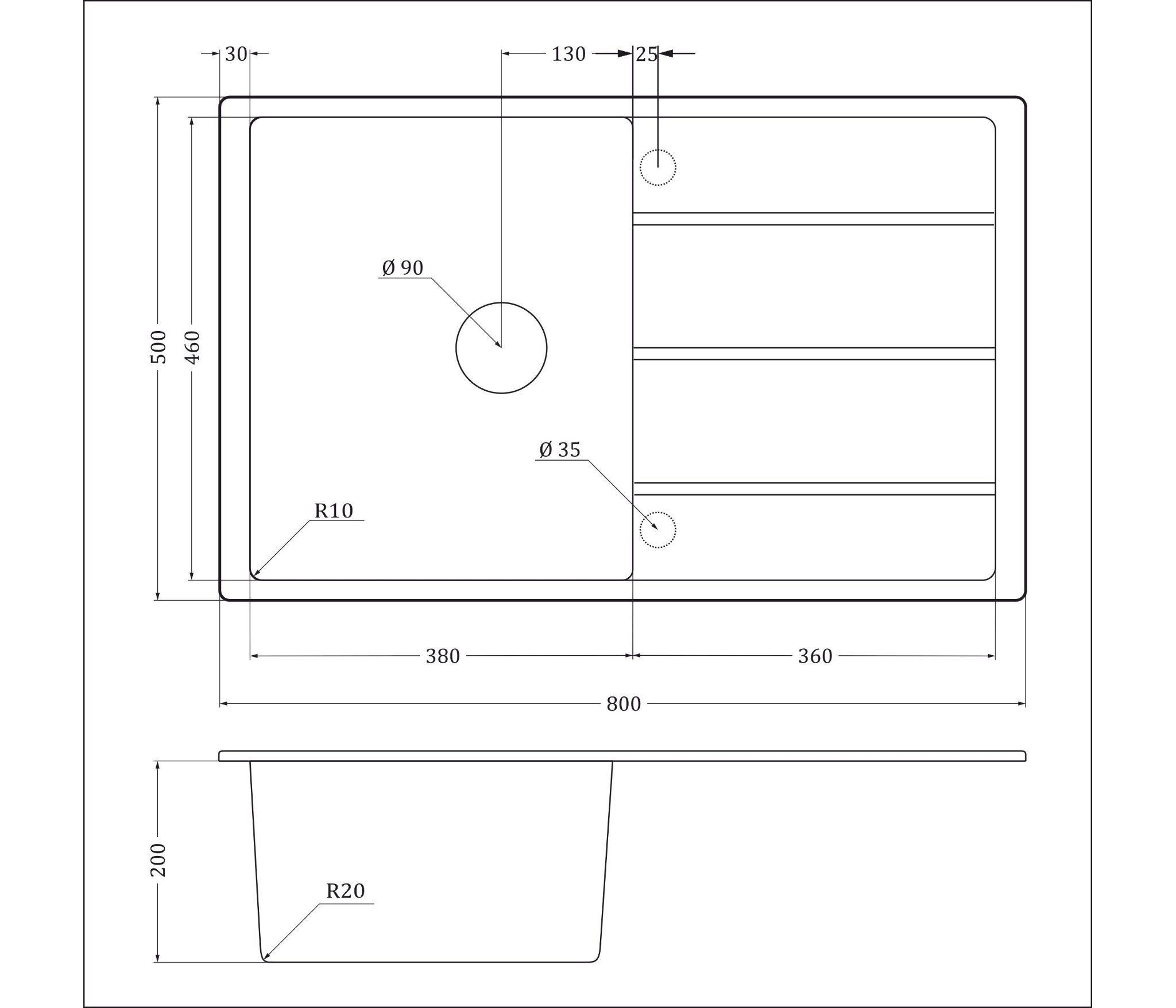 • Размеры мойки: 800 x 500 х 200мм