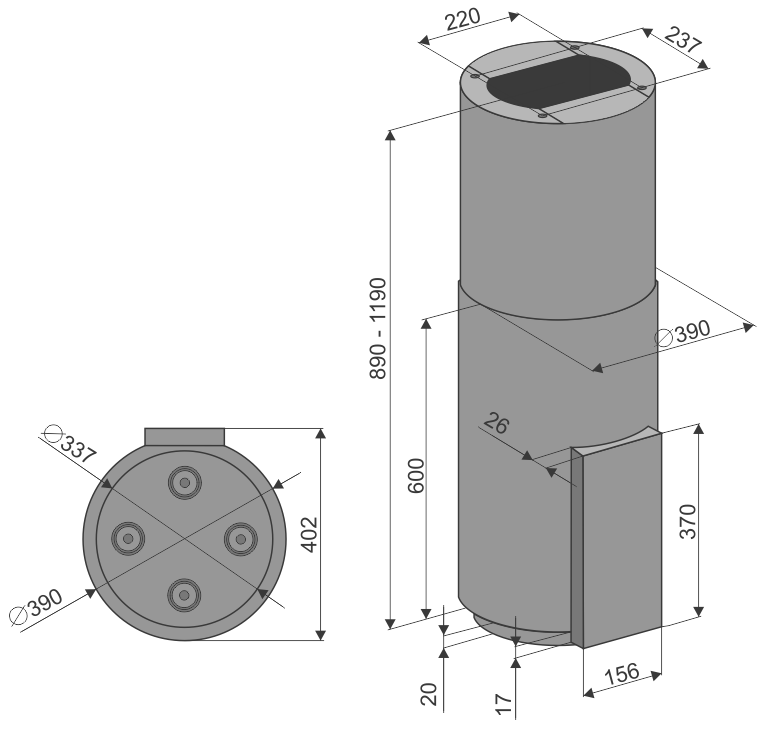 • Вытяжка двух составная с возможностью регулировки по высоте.