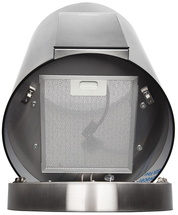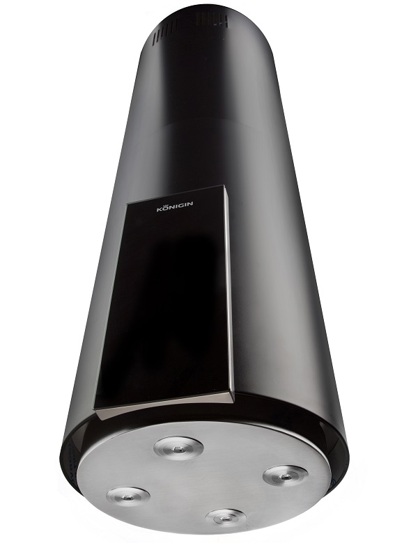 • Островная вытяжка - это уже не только необходимое устройство, но и фантастический элемент интерьера. Сочетания цилиндрического корпуса с прямоугольной панелью управления и круглой декоративной панелью освещения создают стильную геометрию, привлекают лаконичностью и правильностью форм